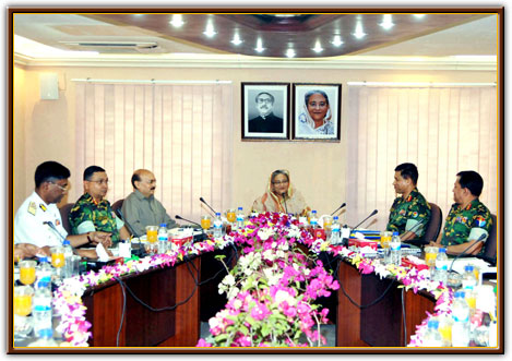 | Prime Minister Sheikh Hassina of Bangladesh presiding over a joint meeting of the NDC and DSCSC at Armed Forces Division in Dhaka Cantonment. |